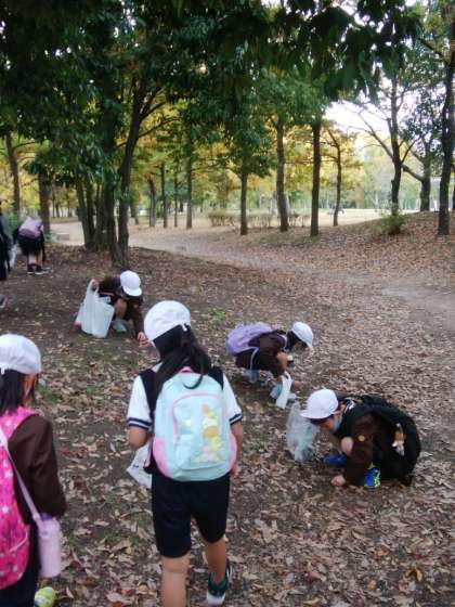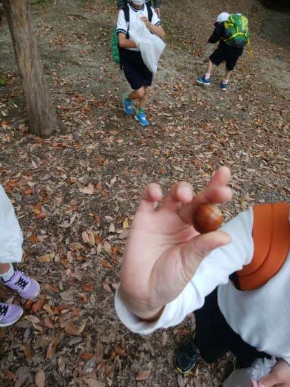 その後場所を変えて、落ち葉やドングリなどを拾いました。