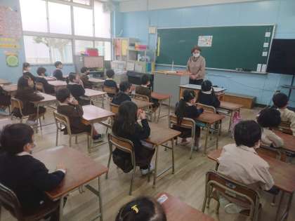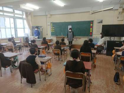 今日はでんでん虫さんによるお話会がありました。二時間目は各学年の1組で行われました。お話は3つあり、合間に手遊びなどを教えてくれました。