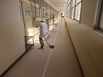 給食の時間に廊下を歩いていると、味噌汁を少しこぼしたといって大おかず係さんが廊下をふいていました。学年が上がるにつれ、大おかずの量も増えるので、二人で息を合わせて運んでいても、蓋の隙間から少々こぼれることがあります。こぼれていないところも拭いていたので廊下の端から端までピカピカになりました。大変気持ちがよかったです。教室に行ってその話をし、掃除していた児童が帰ってくるとみんな拍手で迎えていました。その後、 食べている姿が嬉しそうでした。