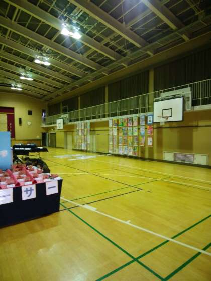 28日(土)に本校で学習参観と作品展が行われます。今日は子どもたちの作品を講堂に搬入しました。