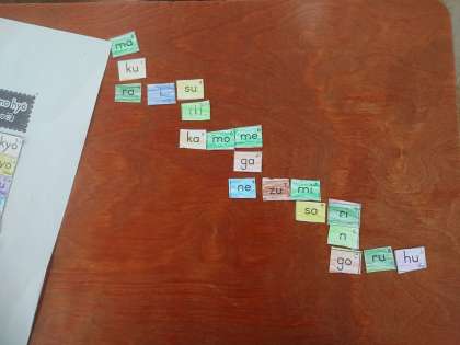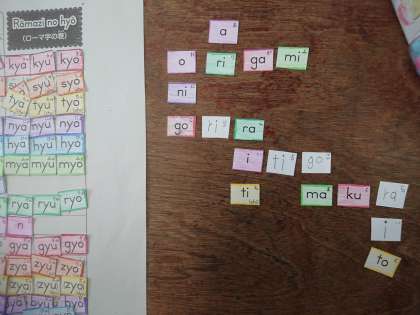 3年生はローマ字の学習です。自分でカードを選んで言葉つなげをしていました。みんな楽しそうでした。