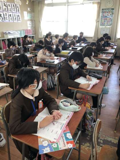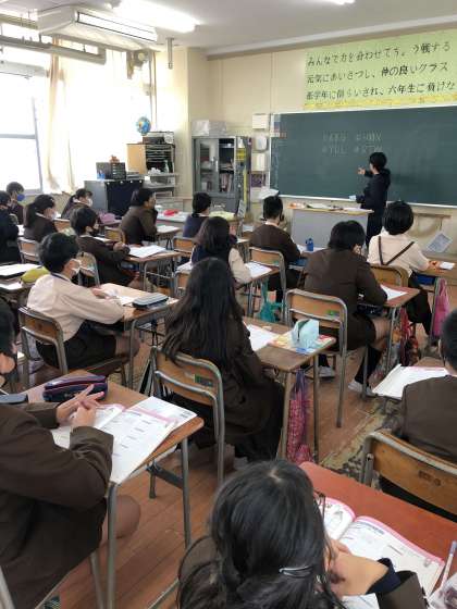 今年から外国語が教科になり、初めは難しく感じていた授業も少しずつ慣れてきています。一生懸命英語を聞き取ったり、がんばって会話をしたりしています。