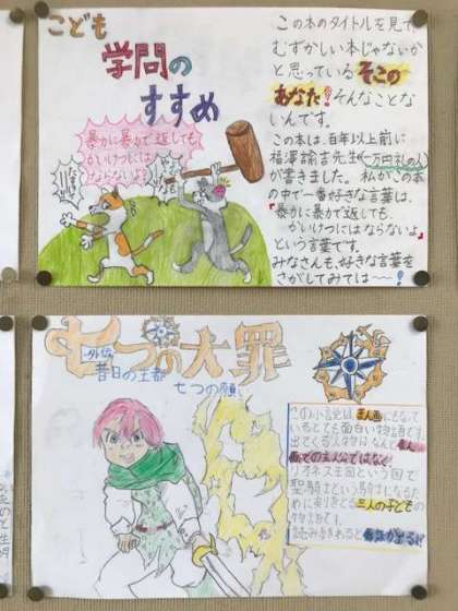 友達に自分のおすすめする本を紹介するために、分かり易い文章を考えたり、文章に色づけをして、より分かり易くしたりとそれぞれが工夫し仕上げることができました。