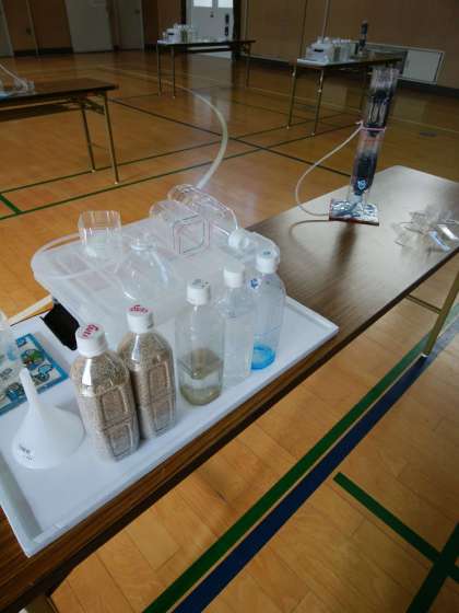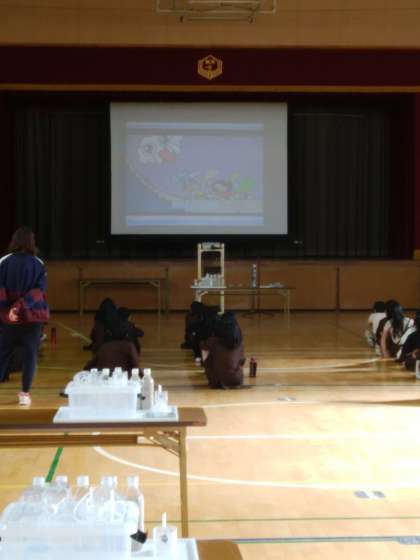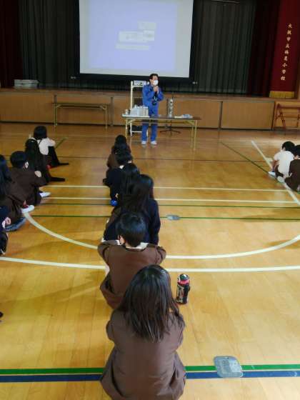 本日4年は、大阪市水道局の方にお越しいただき、出前授業(水道教室)を行いました。私たちが飲んでいる水がどのようにしてつくられるのか、またそれを体験できる実験についての説明を聞きました。