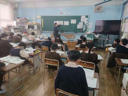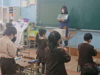 休み中の課題の答え合わせや解説、足し算カードをどれくらいで読めるようになったかなど、それぞれの学級で学習していました。