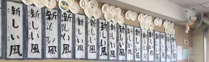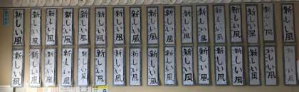 「新しい風」の書き初めをしました。手本を見て、とめ、はね、はらいに気をつけ心を込めて書きました。集中して取り組むことができました。