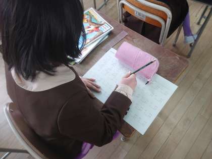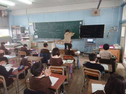 今日の四時間目は算数をしている学年が多かったです。まとめプリントをしたり、テープ図を使って問題を解いたりしていました。