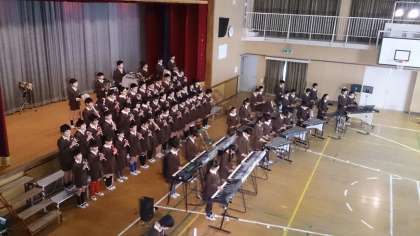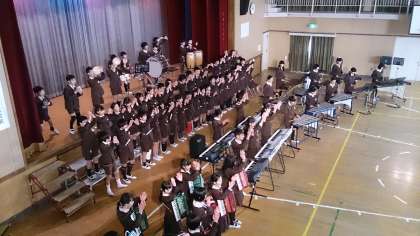 この日のために毎日練習を重ね、全員が一体となるためにメロディー・音や声の大きさを調整してきました。最後の「情熱大陸」では、イントロで全員が手拍子でリズムを取ったり、ソロパートではそれぞれの役割を果たし、体育館が壮大な雰囲気となり曲が終わるとたくさんの拍手に包まれました。