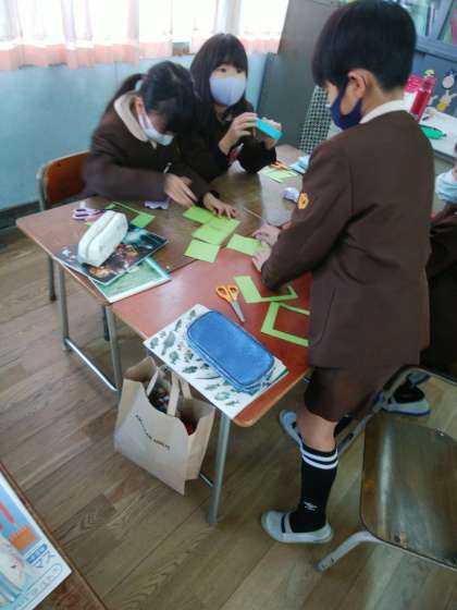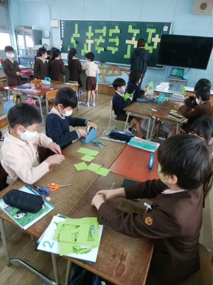 2時間目に算数の学習をしました。箱は以前作りましたが、他に箱になる形はないか班に分かれて考えました。