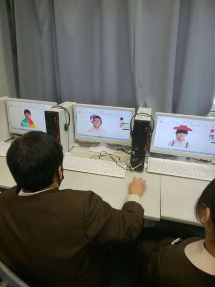 1組は3時間目にパソコン室で、将来の自分ということで、自分たちの将来の様子を描きました。