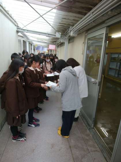 今日今年度最後の委員会がありました。給食委員会では、いつもおいしい給食を作ってくださっている給食調理員に感謝状を贈りました。