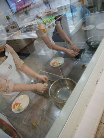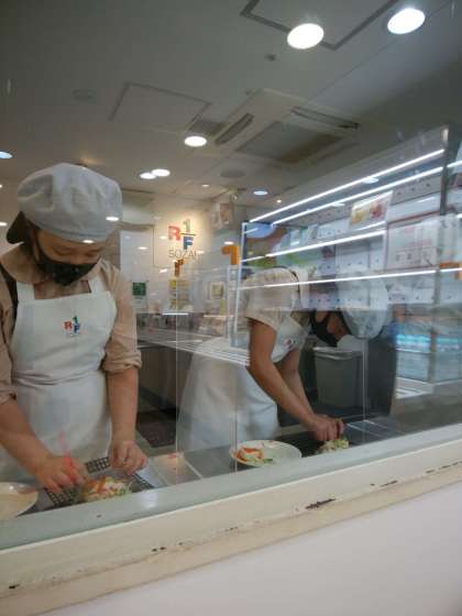 今度は惣菜屋さんです。一生懸命にサラダを作っています。