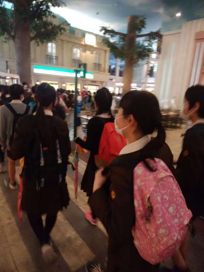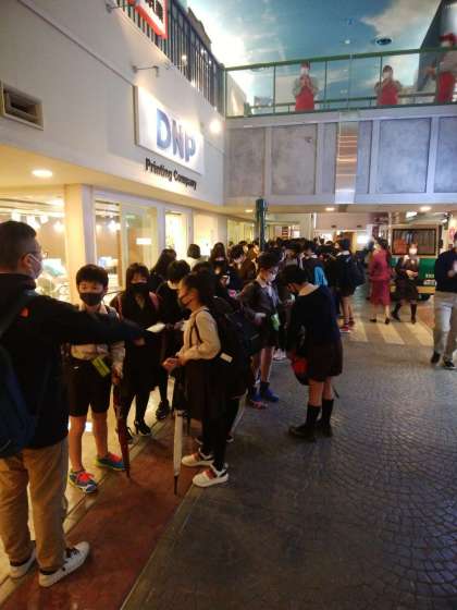 お客さんも感染予防のため半数に減らし、またテーブル使用後、消毒していただいていました。スタッフのみなさんありがとうございました。まもなく児童はキッザニアを後にします。