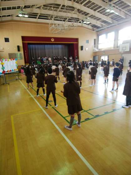 呼びかけの後、「魔法のチャチャチャ」をトライアングルなどの楽器も入れて歌いました。