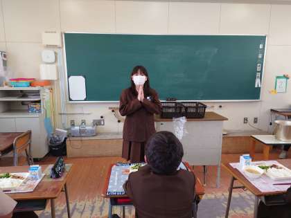 6年生が鶴見小学校で食べる給食も後2回。明日はパンなので米飯給食はラストとなります。しっかりと味わってくださいね。写真は、2組の様子です。