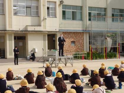 続いて令和3年度の始業式がありました。校長先生の話の後担任等の紹介がありました。