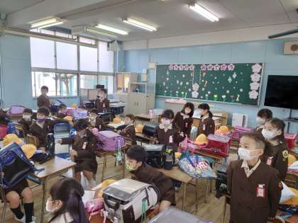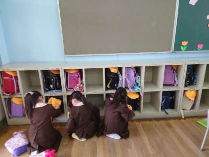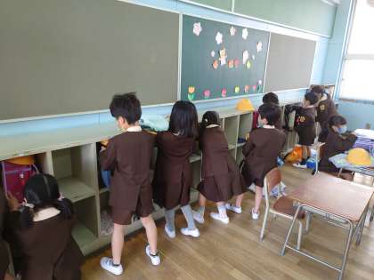 ロッカーがありました。自分のロッカーにランドセルを上手に入れていました。