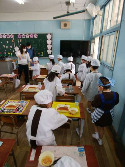 みんな静かに給食を配ることができました。