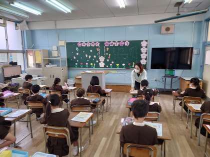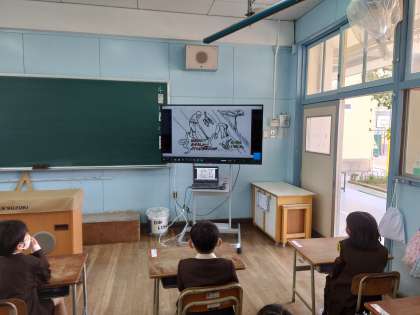 教室に行くと、お道具箱の中の入れ方や鉛筆の持ち方を動画で見ていました。