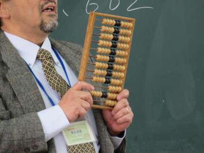 3年生は、そろばんを初めて触る子どもが多く、1玉・5玉の入れ方からたし算・ひき算まで学習しました。また、中国そろばん・問屋そろばん・ロシアそろばん・盲人用そろばんなども見せていただきました。