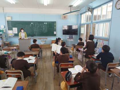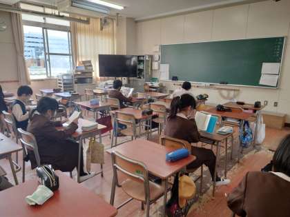 国語や理科をしている学級もありました。今日は5、6年生で視力検査があります。あるクラスでは終わった子から教室で静かに本を読んでいました。