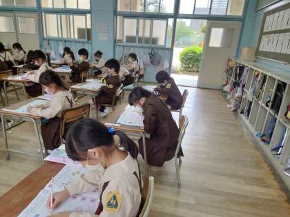 1年生は数の学習です。絵から○、数字とを結んでいます。