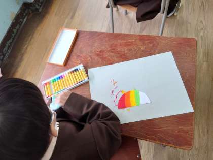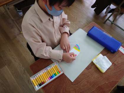 1年生お隣では図工です。みんなで鯉のぼりの鱗を作っていました。出来上がりが楽しみです。