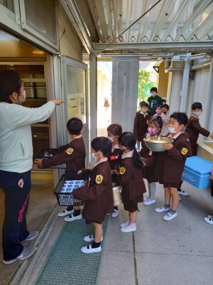 1年はみんなで協力して、給食の片付けも慣れてきました。