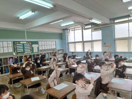 約一ヶ月ほど立ちますが、子どもたちはしっかりお話を聞いていました。さすが鶴見小の一年生。とってもいい態度でした。最後は○×クイズでしっかり答えていました。