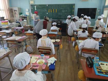 ご飯です。鮭のごまみそ焼きは今年からの新メニューです。練りごまと白味噌で調理しています。