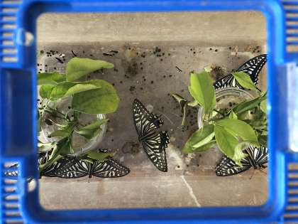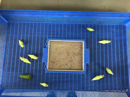金曜日には9匹ほどさなぎがいましたが、土曜日曜の2日間で5羽も羽化しました。