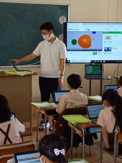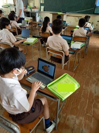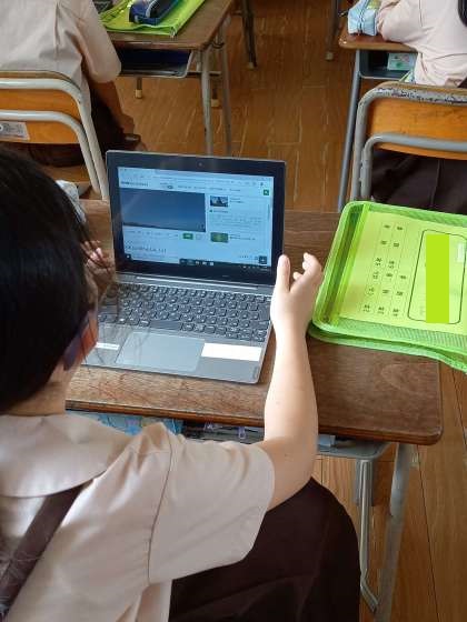 1組では今度持って帰るタブレット端末を使って、家で見る動画の開き方の勉強をしていました。