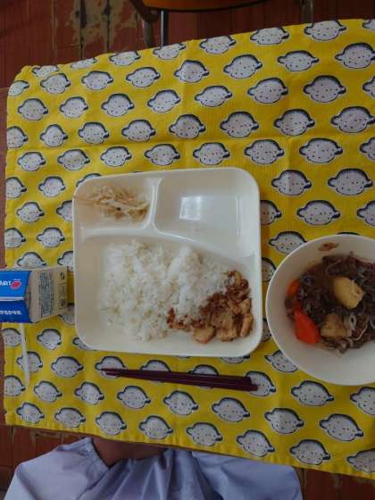 ご飯です。肉じゃがは子ども達に人気があります。