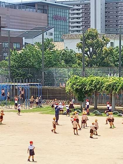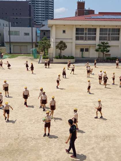 休み時間になると、みんな運動場へ出てきます。