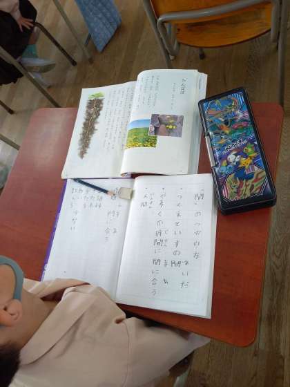 2組は「たんぽぽ」に出てくる漢字の勉強をしていましたよ。明日テストがあるみたいです。みんながんばってね。