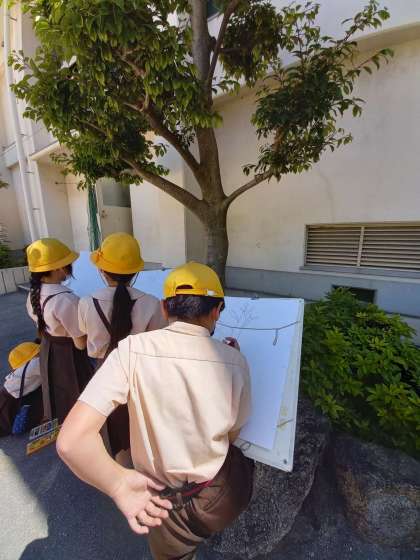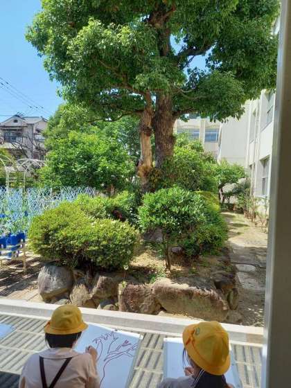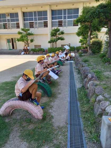 4年は木を写生をしていました。さてみんなどんな絵になるのでしょうか?楽しみですぬ。
