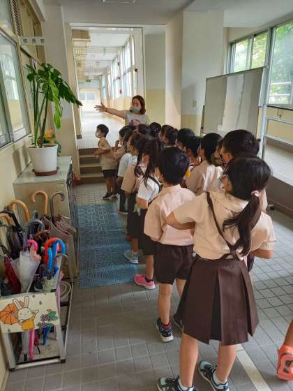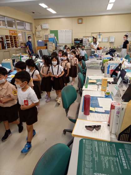 1年は生活科で学校探検をしています。今日は、職員室や校長室に来てくれました。みんなお行儀よくしていました。素晴らしいです。