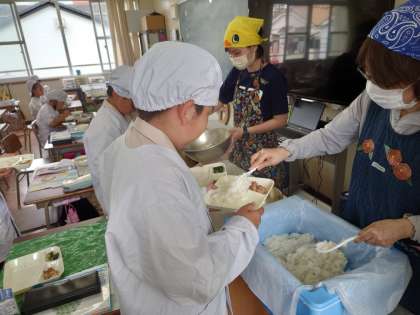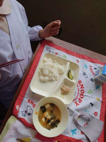 ご飯です。お味噌汁でしっかりと塩分を取ってくださいね。