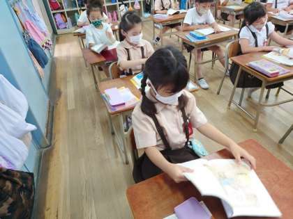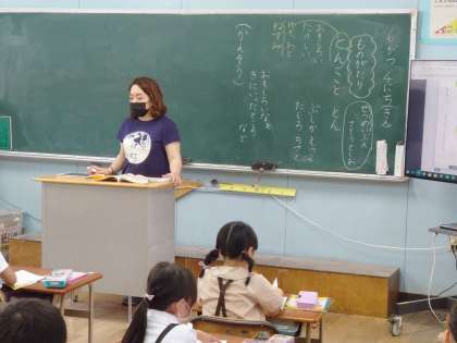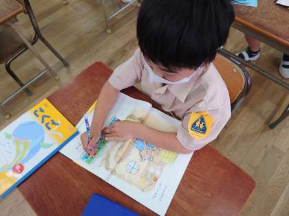 一年生は国語をしていました。「とんこととん」の学習で自分が好きな文に線を引いていました。