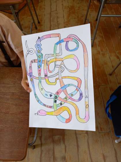 3年は色鉛筆を使ってくねくねヘビを描いていましたよ。