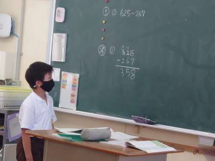 繰り下がりのある引き算を計算していました。