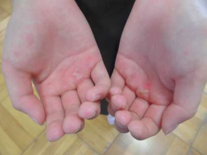 写真の子は、うんていやジャングルジムで思いっきり遊び、チャイムが鳴って気が付いたらこうなっていたのだそうです。