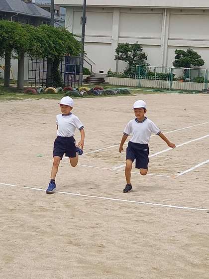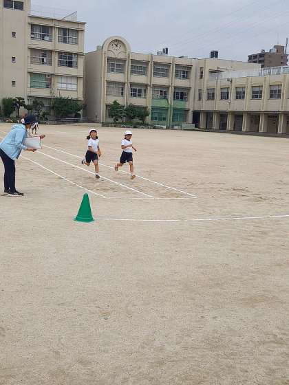 2年は50m走をしました。最後まで一生懸命走り切っていました。
