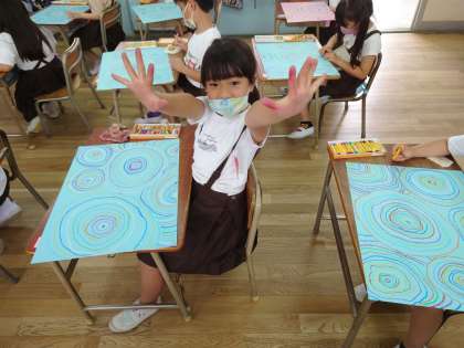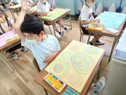 クレパスを使ってぐるぐるを書いていました。ここから人をかいていきます。どんな絵になるか楽しみですね。