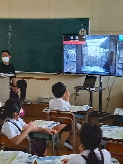 1組は、環状線一周のビデオを見ながら、地図上の位置を確認していました。