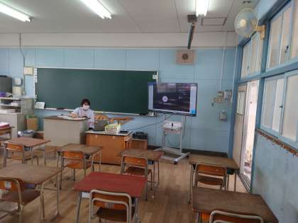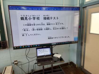 お昼に接続テストをしました。たくさんの2年生が確認していました。