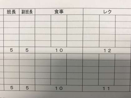 班長・副班長・食事係・レクリエーション係に分かれて、進めていきたいと思います。