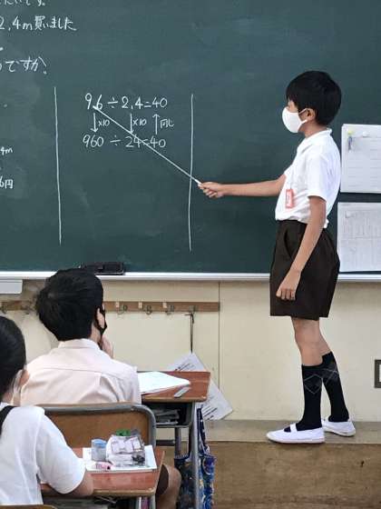 96÷2.4をわり算のきまりを使って考えて説明したり、