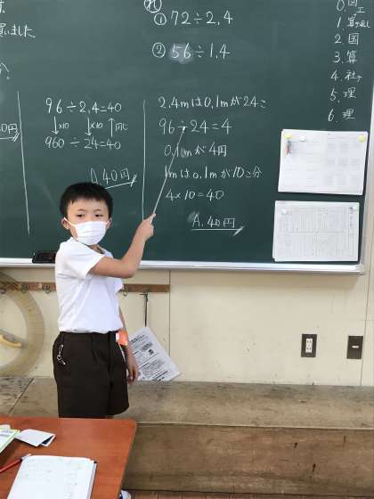 今日は、「2.4mのものが96円の時に、1mあたりは何円か」という問題に取り組みました。
