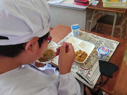 とろり汁、苦手かなと思って食べると、エノキやもやしが入っていてシャキシャキと、もずくはトロリとしていて楽しい食感です。塩気もあって今の時期にピッタリです。